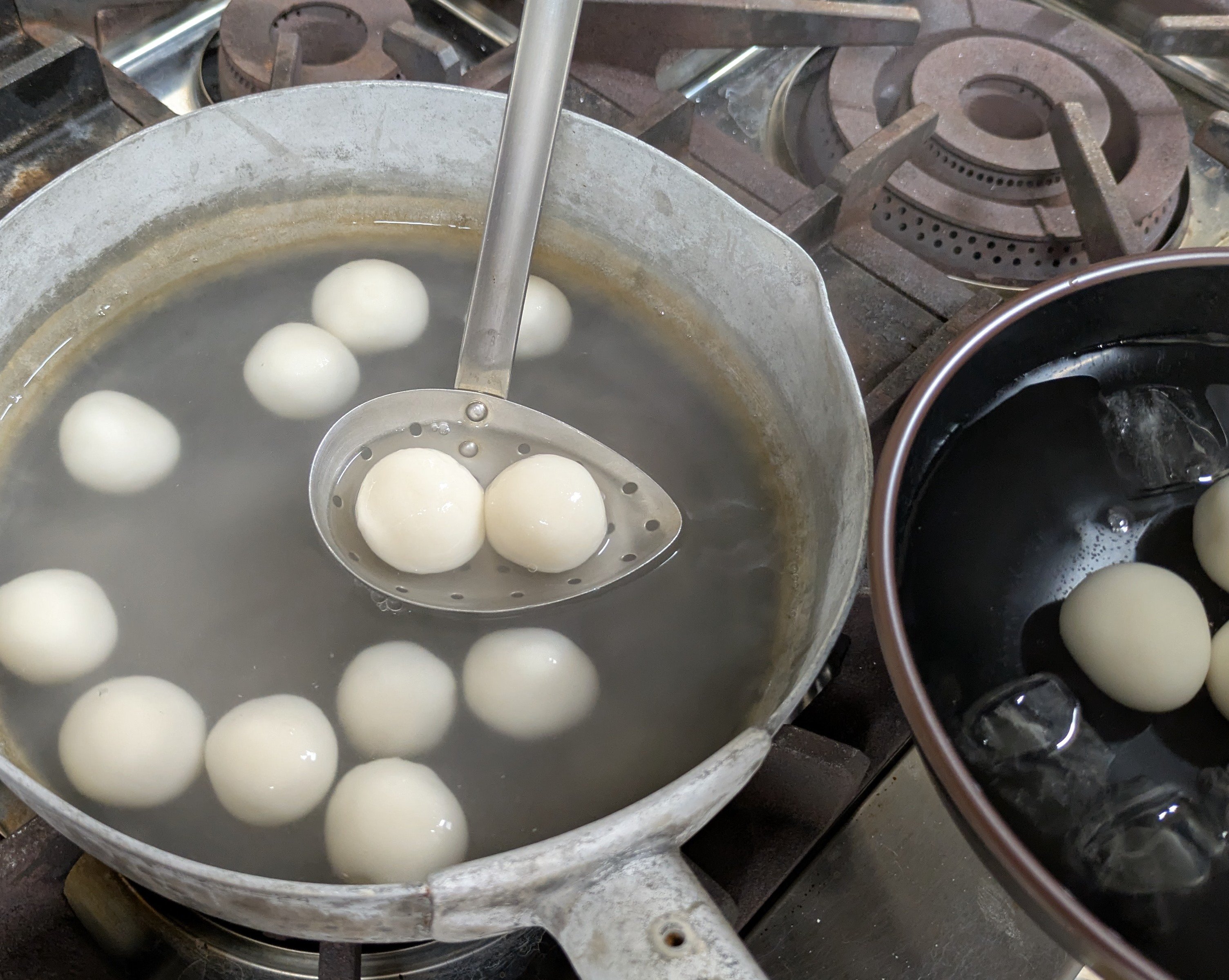 3.浮いてきてからさらに3分程茹でて、冷水に取る