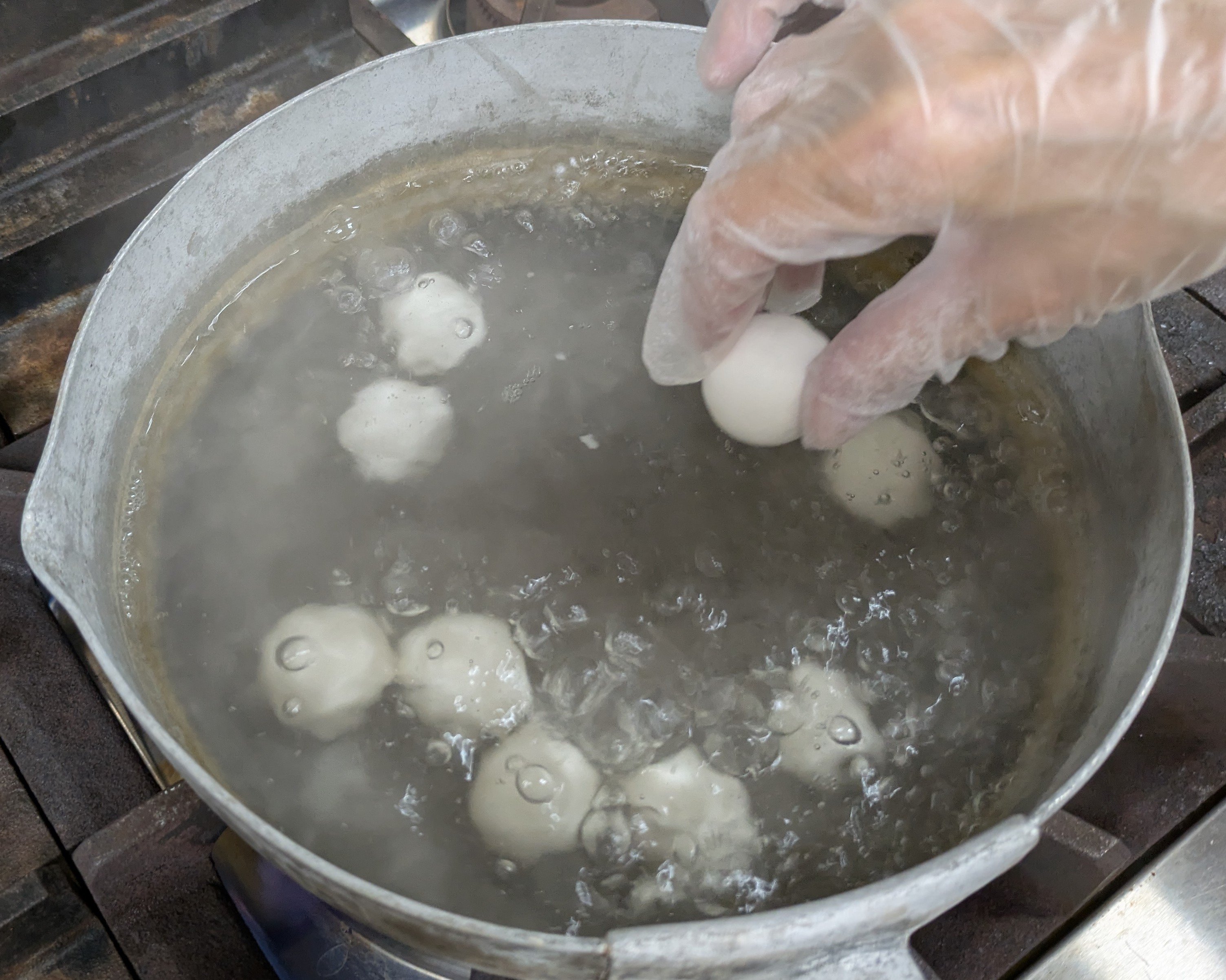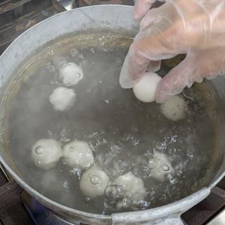 2.沸騰したお湯に団子を丸めて入れて茹でる